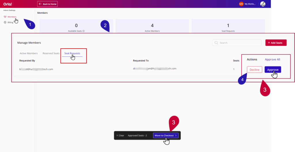 • Click on the Seat Requests menu under Manage Members to view the pending requests.