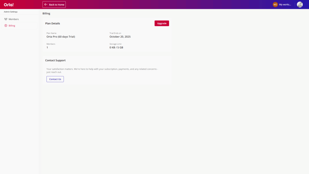 The Billing & Members pages acts as the central hub for managing both payments and workspace seats. From here, the workspace owner can: